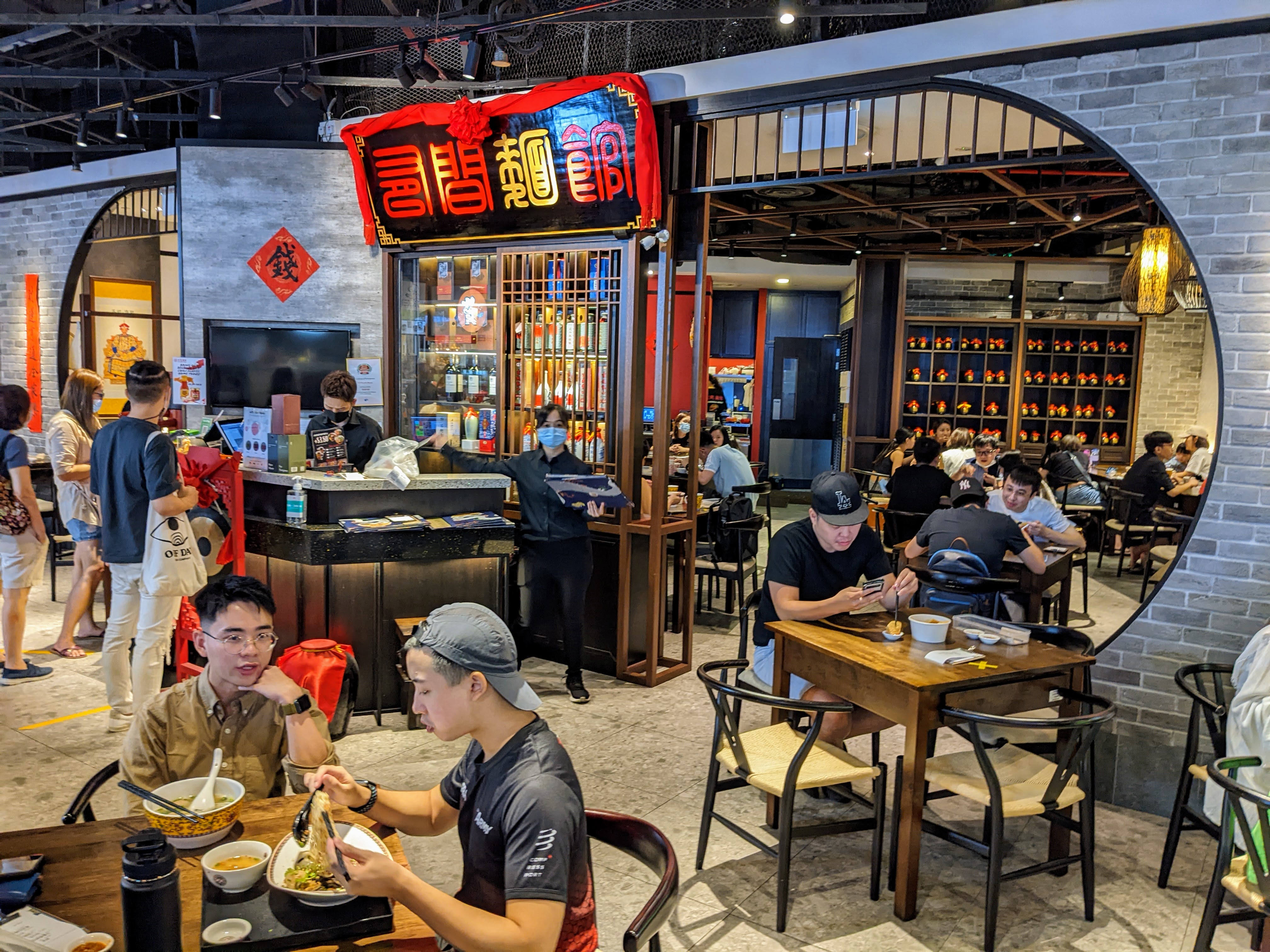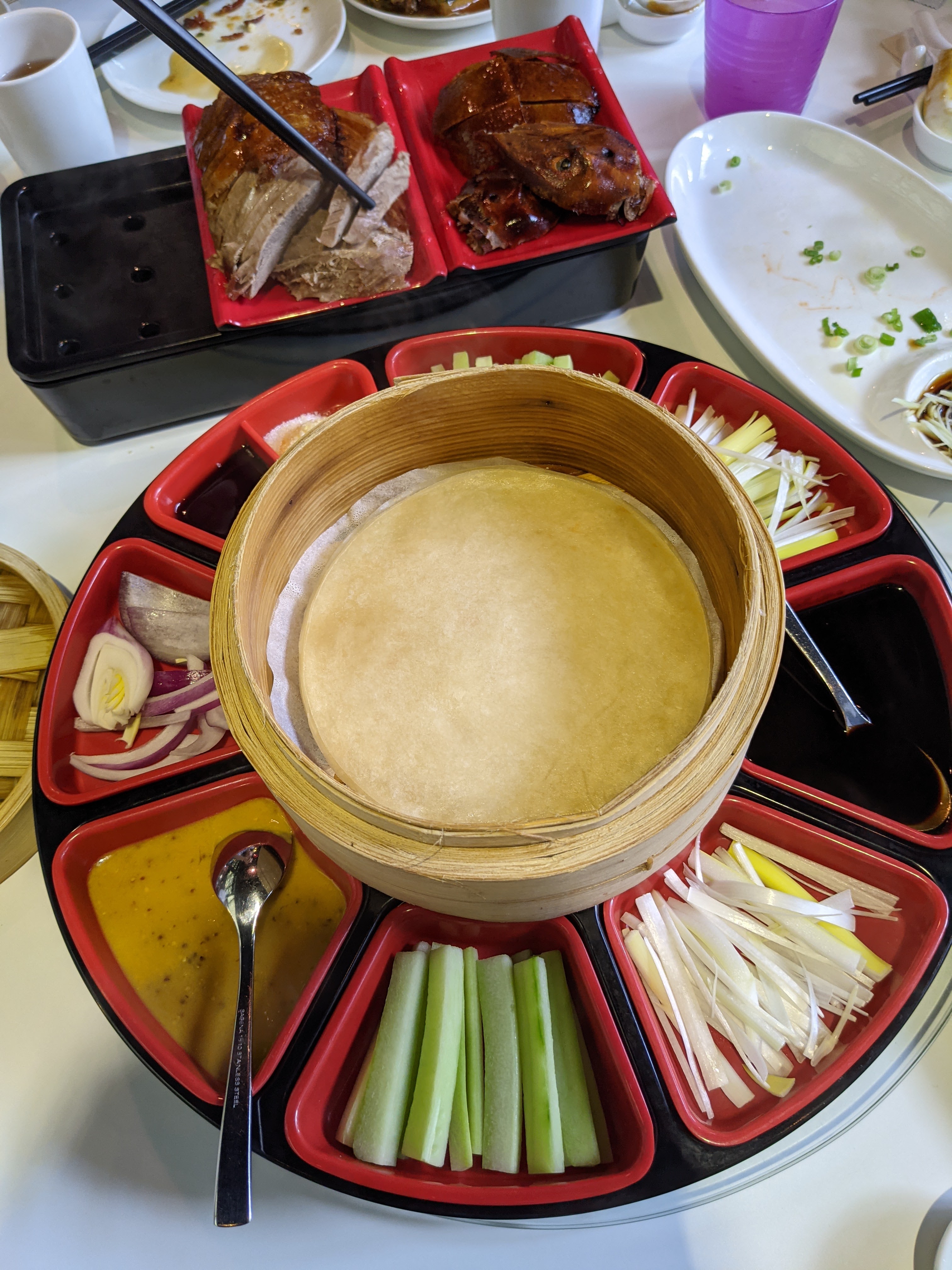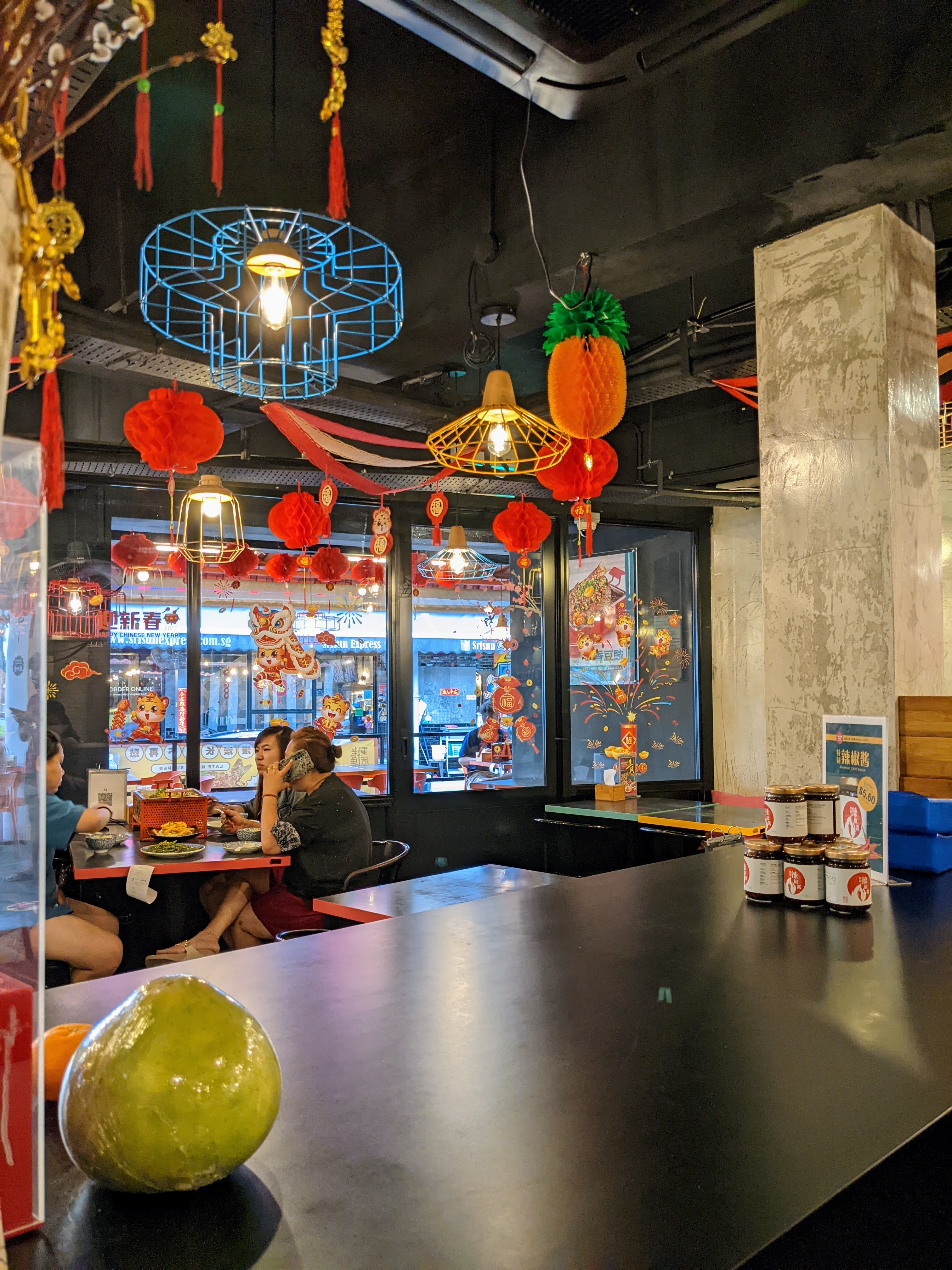 For this project, I generally prefer street food, but you can’t really say you’ve covered Beijing without Peking duck, so I rounded up some friends to try out Tung Lok Xihe (同樂羲和), Beijing Xiheyaju’s collab with the fancy Cantonese seafood empire. (Since my visit, they’ve rebranded as Tunglok Peking Duck.) I had my doubts about this combo, tucked away atop an Orchard shopping mall to boot, but the duck here is the real deal. Available only by pre-order, made from Irish ducks (apparently the wagyu of the duck world) and roasted on site in a brick oven, it’s sliced at your table and served with a platter of 8 condiments. In addition to the canonical cucumber/scallion/sweet bean sauce combo for your pancake wraps (“It’s like Mexican Chinese!”, commented my taco-loving offspring), you can also dip the super crispy skin into blueberry sauce and popping candy (!), getting a gimmicky but fun snap crackle pop experience. Often a crispy skin comes at the expense of dry and rubbery meat, but here the duck was juicier than a Cardi B music video, and we devoured it as is instead of opting for the $12 upgrade to get it made into a stir-fry. All in all, definitely the best Peking duck I’ve had in Singapore, and worth the indulgence even at $78++.