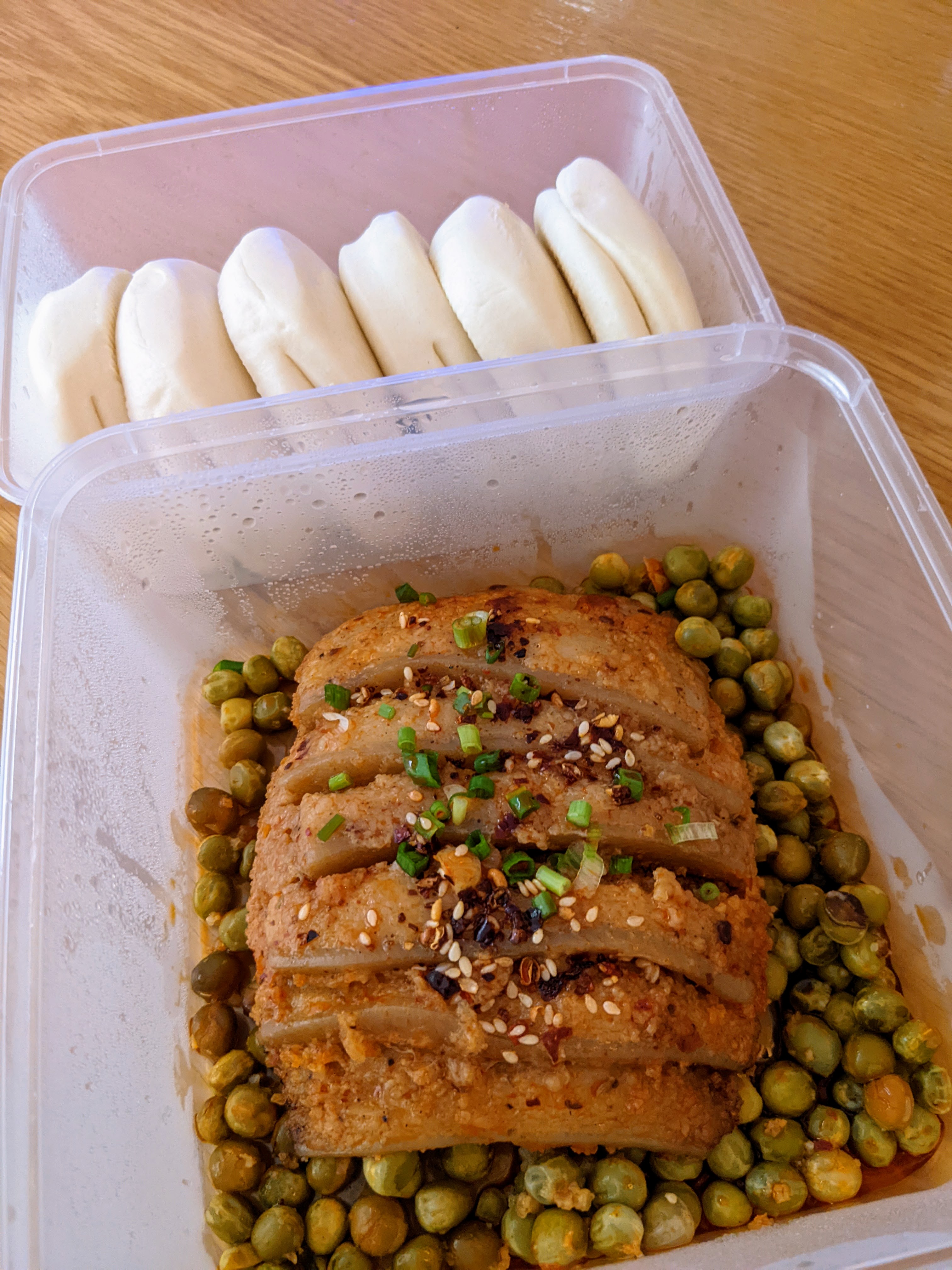 One more Beijing staple I was keen to try was cornbread, known as wōtóu (窝头) or wōwōtóu (窝窝头) in Chinese, literally “bird’s nest heads”. Originally peasant food, a highly dubious legend say that Cruella de Vil Empress Dowager Cixi was treated to some while fleeing the Boxer Rebellion in 1900, and brought them back to the Forbidden City on her return two years later. Alas, a task of equally legendary difficulty is finding any staple grain other than rice or wheat in Singapore, and not a single restaurant in Singapore appears to offer cornbread on the regular menu. But once again Dough Magic came through with bags of frozen mini wotou for $9.80, in 5 different flavours to boot: yellow corn (玉米), brown sorghum (高粱), black rice (黑米), purple yam (紫薯) and green shepherd’s purse (荠菜). These conical little cups are hollow on the inside, so after steaming for around 5 minutes, we served them up with an Australianized san choy bau (生菜包) filling of minced pork and mushrooms. Tasty, pretty and fun! Although, to be honest, all five types tasted bland and near-identical, even the texture was ground smooth and not gritty like American cornbread.
