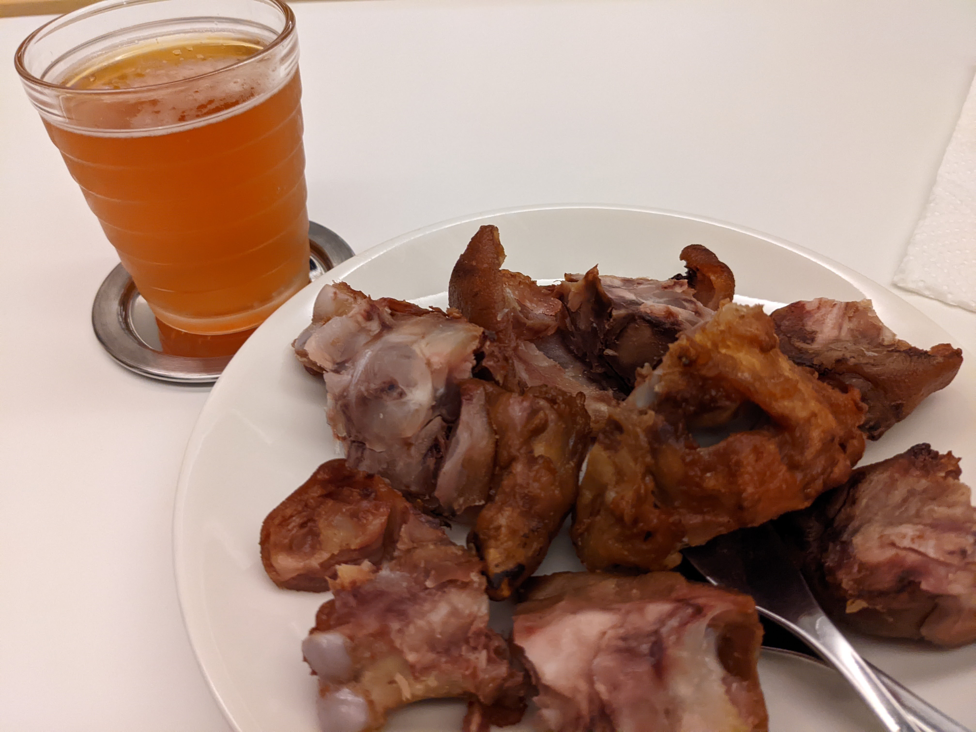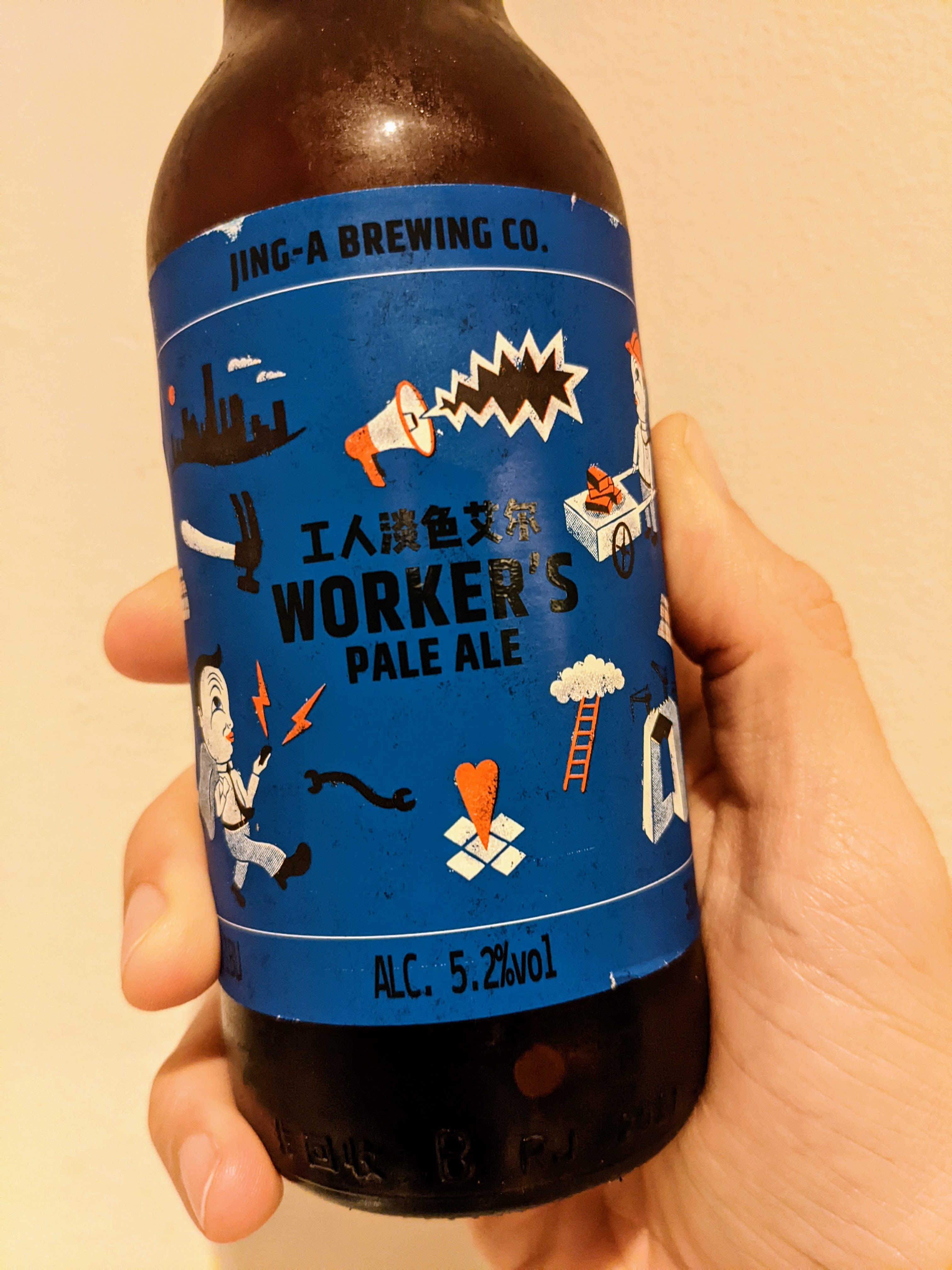 My Anhui-in-Singapore pig trotter was a bit of a challenge to eat, since the intimidating exterior hides a mess of bones, collagen and cartilege. There wasn’t much in the way of smoke flavour, but the odd morsel of meat lurking in there was quite tasty, and I was reminded of Korean jokbal (족발), a similar soy sauce braised trotter treat, although that’s usually served deboned instead of making you do the work. As for the Beijing-in-Anhui Worker’s Pale, it was rather too hoppy for me, Jing-A’s Mandarin Wheat is much more to my liking.