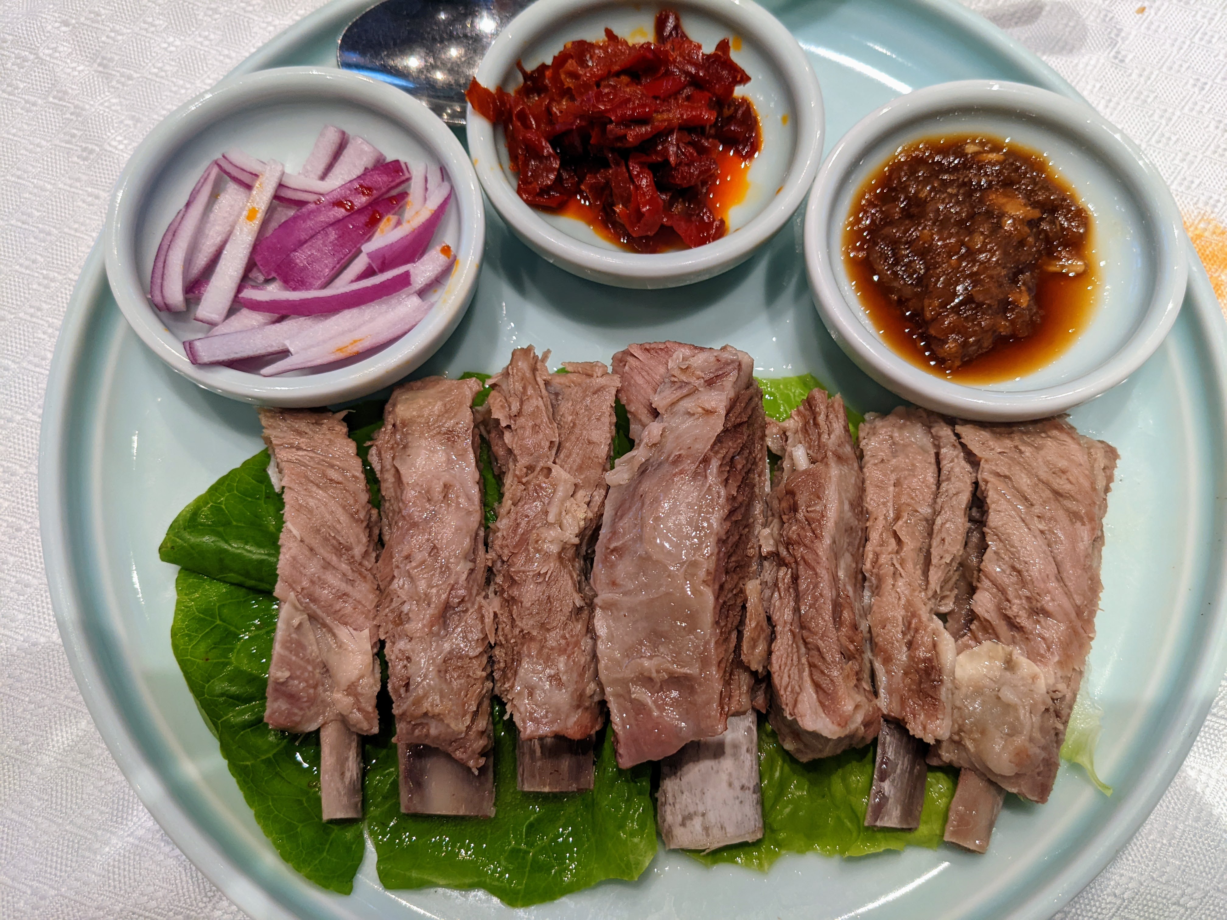 So all in all the food was quite good, but was it really Manchurian? Well, both main courses could plausibly have been served up at the Qing-era Imperial Palace in Beijing, so you could argue so, but both were also a pretty long way from the pork-and-millet diet of the original Manchu. Interestingly enough, across the border in Korea the very similar spicy pork spine soup gamjatang remains very popular, so perhaps there’s even more cross-pollination going on.
