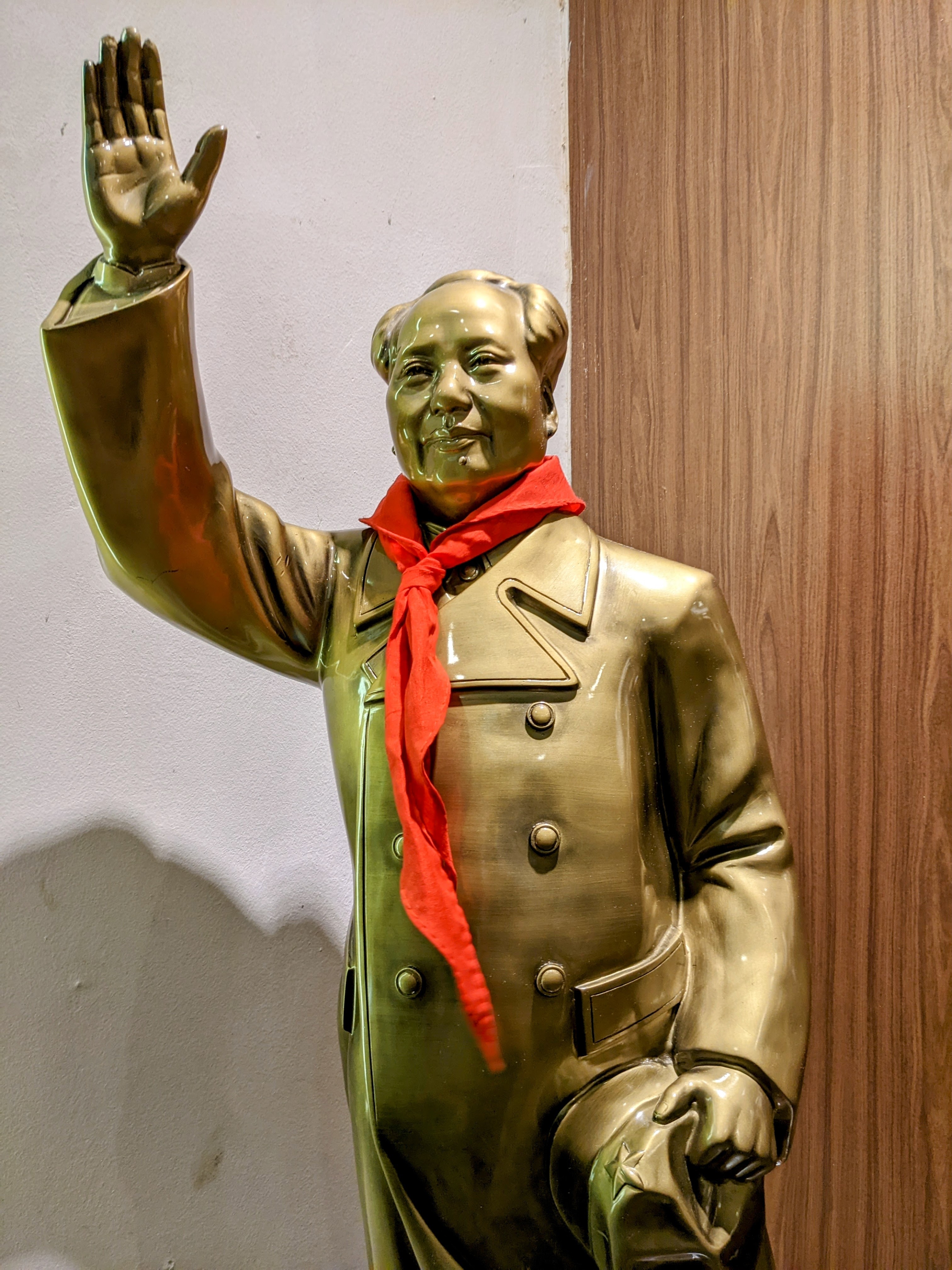 On entry, you’re greeted by a chipper bronze bust of Hunan’s iconic mass murderer, which leaves you a bit of a bad taste in your mouth even before you sit down on the otherwise rather nice leather seats. On a random Wednesday evening the place was packed and the boisterous table of Koreans in front of us was already several beer bottles deep into their evening.