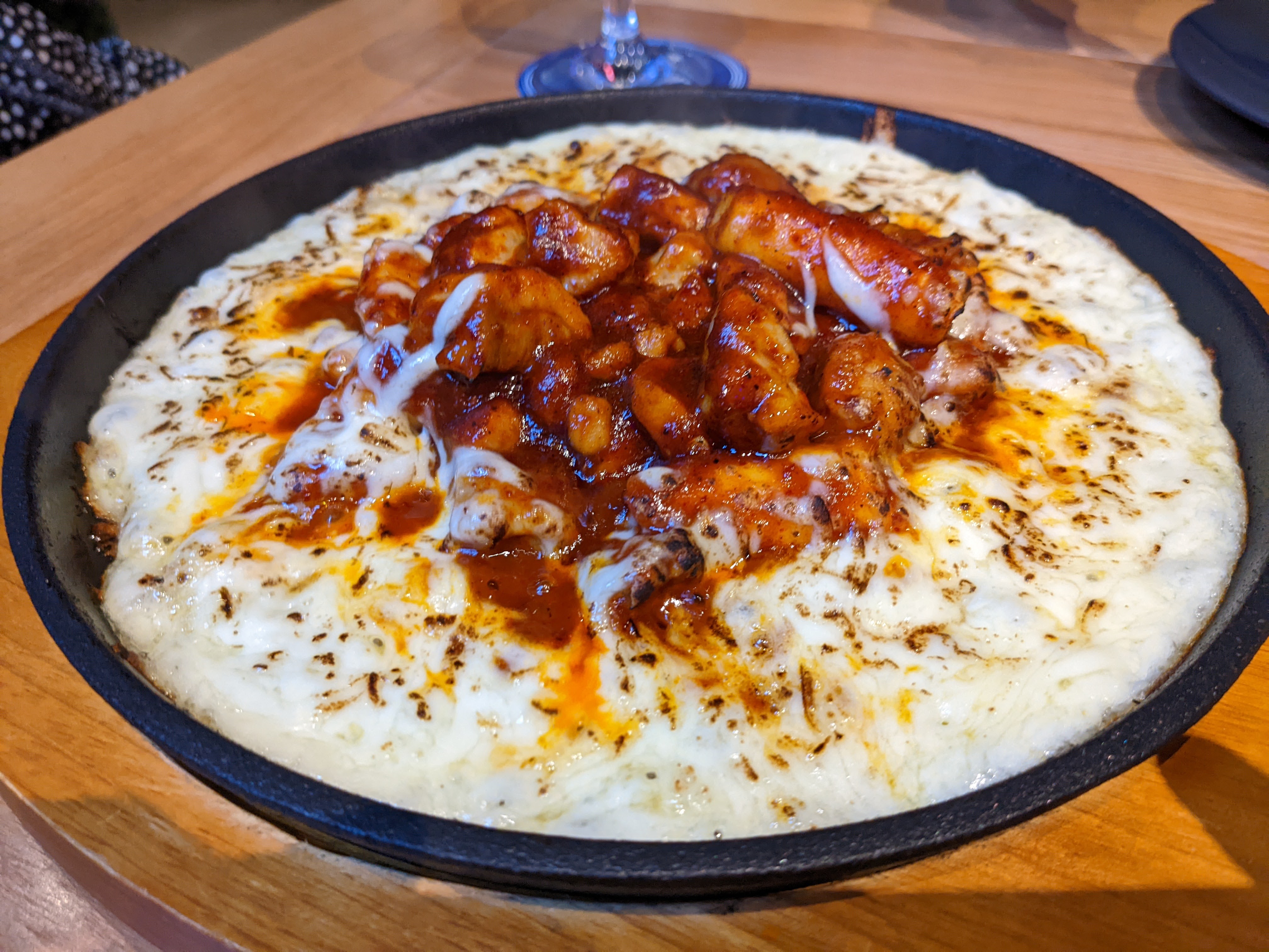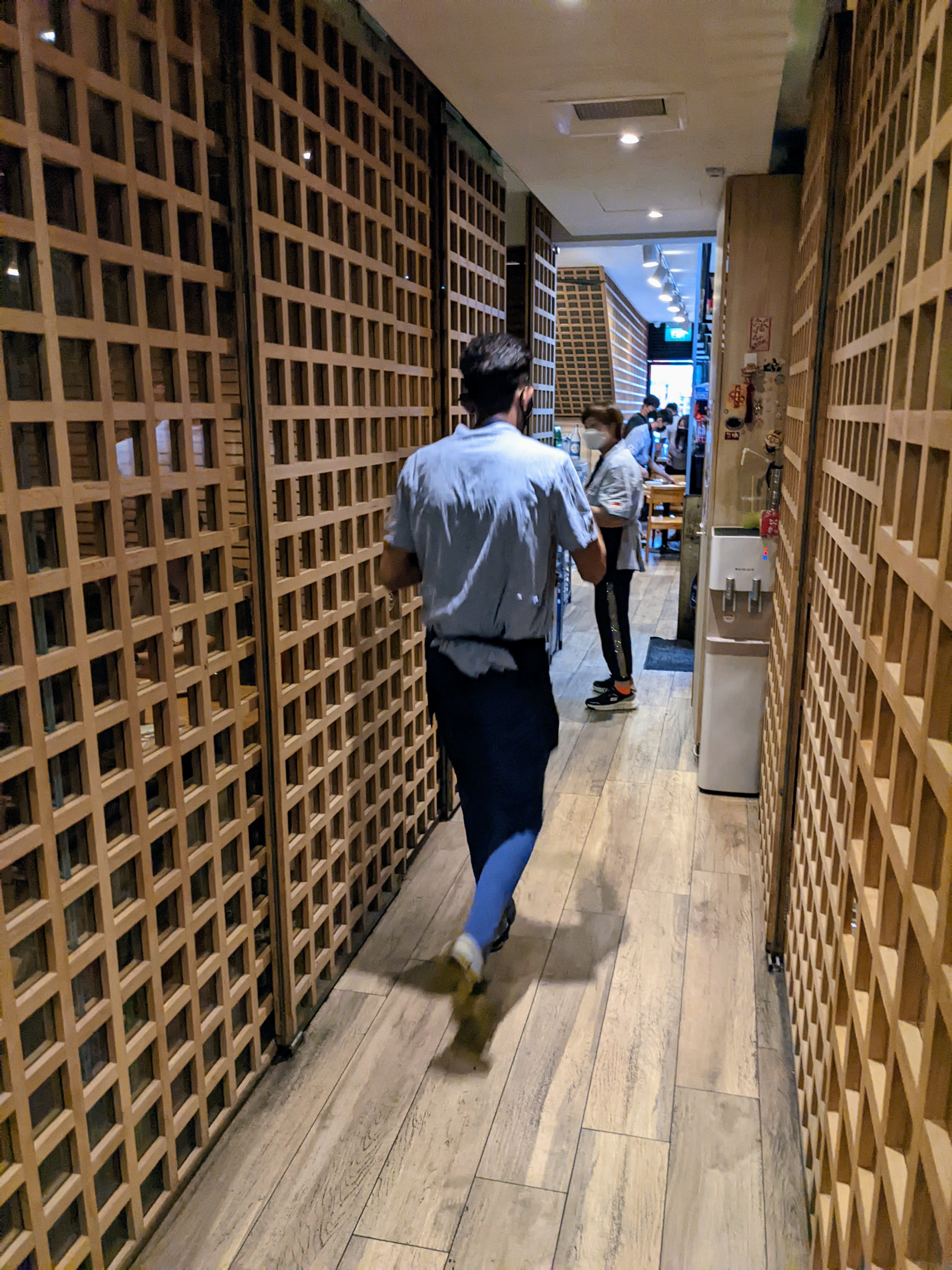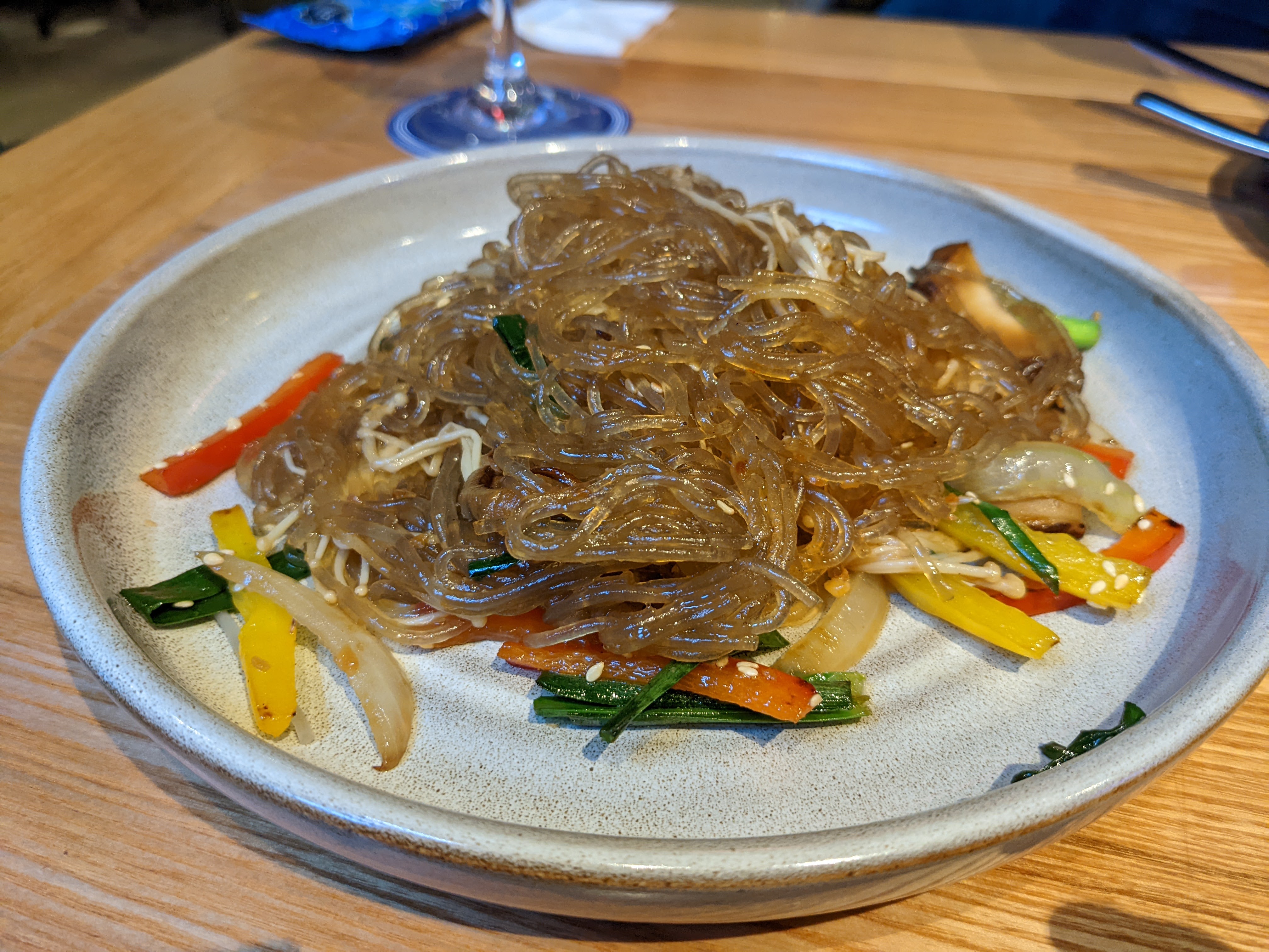 Turns out not only does the drinks menu feature soju cocktails and Cass on tap right next to the Tsingtao, but basically everything else on the menu is also Korean! Army stew (budae jjigae); tteokbokki rice cakes with cheese; japchae (잡채/雜菜) stir-fried sweet potato noodles, another Chinese import into Korea; ramyeon (라면) noodle soup, a distant cousin of Gansu lamian and more, with a couple of token “Japanese” dishes if you wanted non-spicy options. The tteokbokki was particularly nice, served on a sizzling iron plate that gave the cheese a nice crust underneath, and the sauce had lots of chicken chunks and much more depth than the usual insipid ketchupy mess. The chuan were also OK, very Chinese in flavor with generous chilli-cumin dusting, but the portion sizes were quite small. A good deal at $1 a skewer for happy hour, less so when we were paying the full $3-5 per whack. Then again, this is clearly more a place for drinking than eating, so if you’re down for a bucket of soju and want some meaty snacks to go with it, you could do far worse. $160 for 4, which is not great, not terrible.